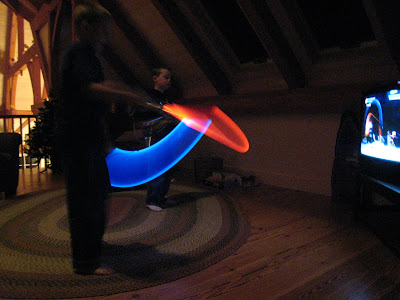 Thanks to Uncle Dave & Aunt Wilma, the boys have another challenging favorite-- Star Wars: The Clone Wars (thanks Uncle Dave & Aunt Wilma). The title alone captured the boys' interest immensely, but when they opened the lightsaber attachments, well.... let's just say they rejoiced with exceeding great joy.